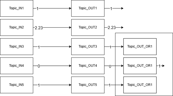 1. Если в конфигурации алгоритма 1 или алгоритма 2 присутствуют одинаковые входные топики, то параметры для маппинга(преобразования) будут использованы из конфигурации топика, который был указан последним.