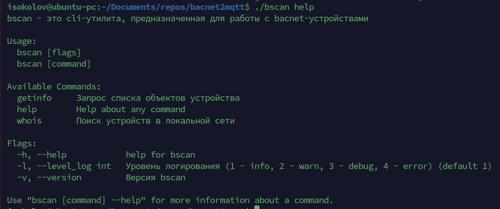 ./bscan help ## или -h, --help, но для команд только -h или –help