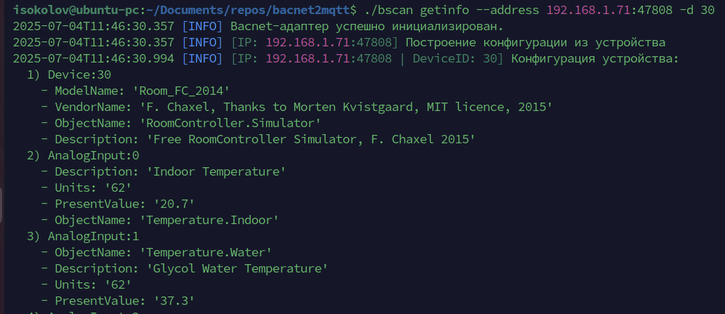 -c, --cfgpath string Путь до файла конфигурации (default "configs/bacnet2mqtt/bacnet.yaml")