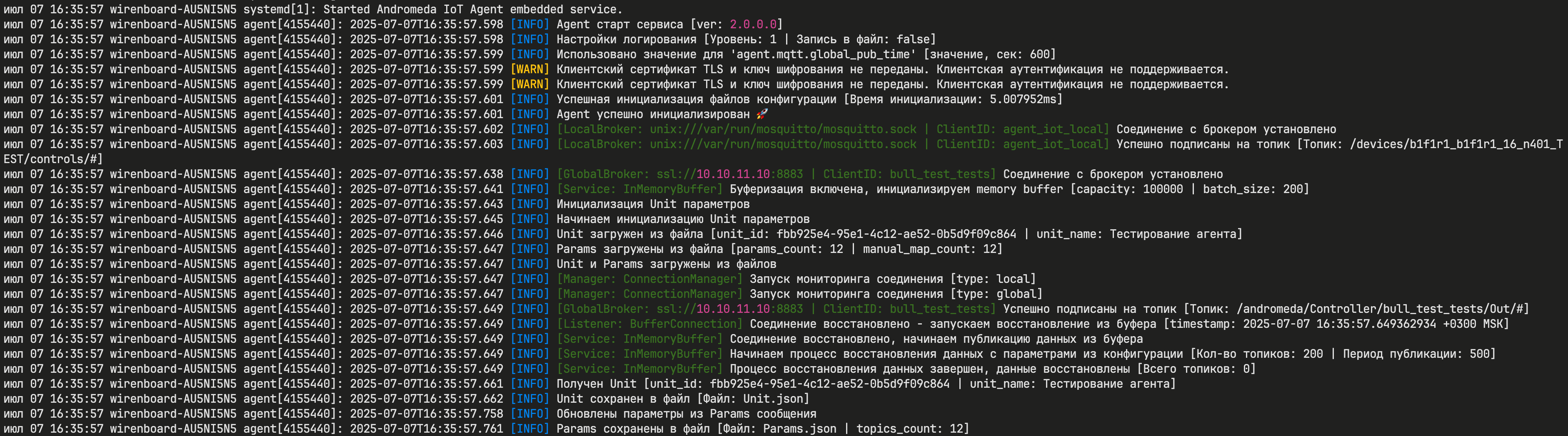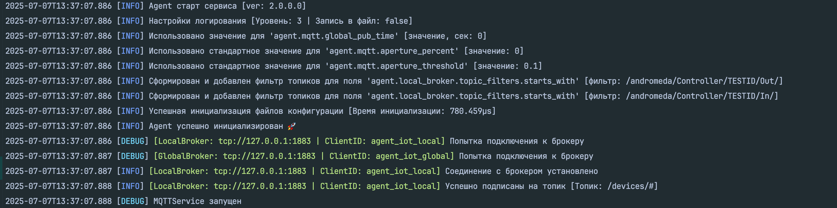 IoT Agent 2.0 — приложение, предназначенное для взаимодействия с системой АС «Андромеда» на уровне IoT-контроллера и обеспечивающее двунаправленную связь между локальными устройствами и внешней системой управления через MQTT-брокеры. Выполняет роль агента сбора данных и управления устройствами.